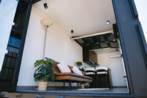This Swan Flat was installed in a small urban backyard to create a stylish guest suite for visiting family.